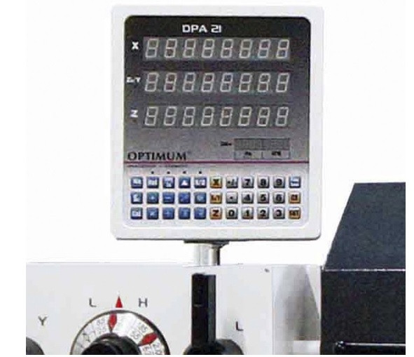 - Livrés de série avec afficheur digital de position DPA 21 et ses 3 règles en verre (une pour chaque axe), pour une mesure précise des courses, une réduction significative des temps de réglage, une très haute précision de travail, une baisse des erreurs d’usinages.