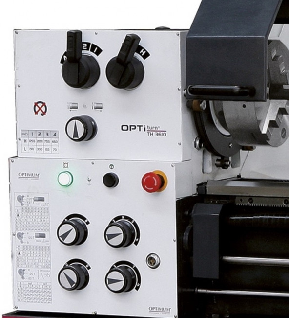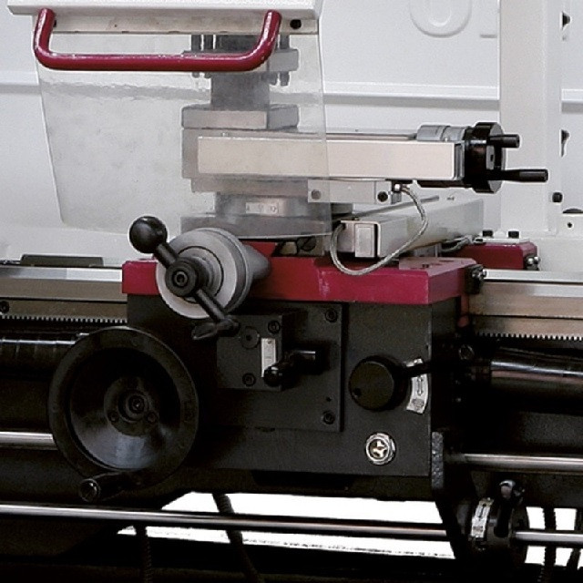 Le tour est équipé d'une gamme de dispositifs de sécurité, notamment un décalage latéral de la poupée mobile pour le tournage conique long, une inversion droite/gauche du sens de rotation de la broche avec commande au tablier, et un arrêt d’urgence "coup de poing".