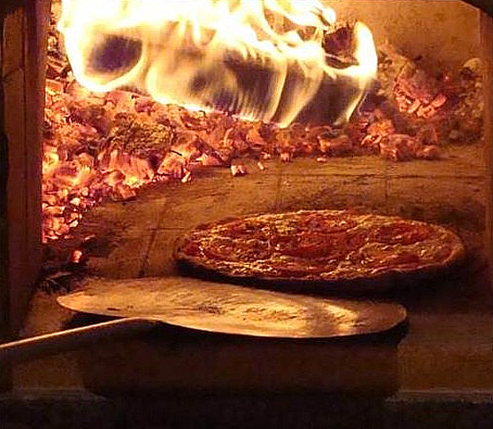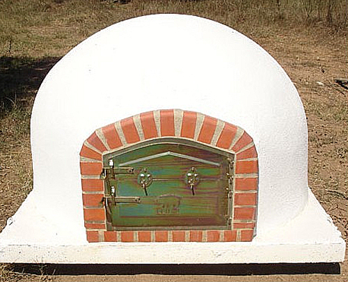 Fours à bois traditionnels, fabriqués en brique et dalle réfractaire terre cuite, équipés d'une double porte et d'un axe pour tournebroche.