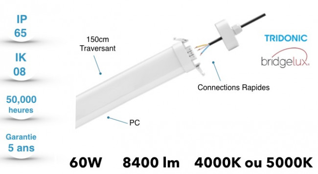 Cet éclairage linéaire étanche est un luminaire professionnel qui convient aux locaux qui exigent un haut niveau de protection contre la poussière, l'humidité et les chocs.