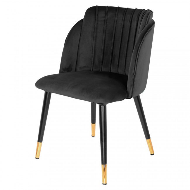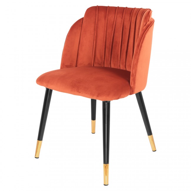 Chaise de style contemporain, avec une structure noire en acier, laiton et en bois. Le revêtement de l’assise est en velours, facile à nettoyer et très commode. Les dimensions sont les suivantes: 65,5 x 51,5 x 78,5 cm.