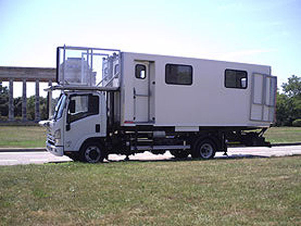 - Type fourgon ambu lift routier pour des véhicules à partir 11 T, avec une hauteur d’élévation du fourgon 5.90 mètres maxi et 1.20 mètres mini.