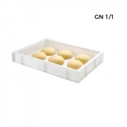 Bac à pâtons au format GN 1/1, dimensions compactes idéales pour le stockage dans les meubles gastronormes et saladettes.