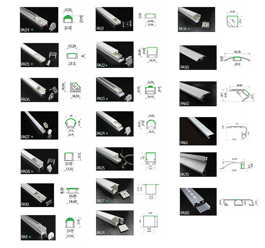 Toute une variété de profilés est disponible, en plexiglas opalin, transparent, à capuchons latéral et support encastrable ou coulissant, tout dépend de votre besoin.