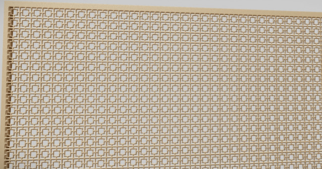 La tôle perforée Odin est composée de vides concentriques de formes complémentaires : le carré central est couronné de fentes angulaires. La répétition du motif aligné adroitement reconstitue une croix.