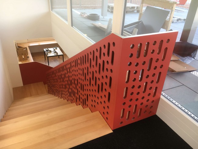 - Rampe colorée d'escalier pour le bâtiment administratif,