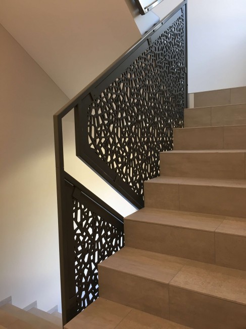 Conçues en Cellon (HPL) ou MDF de manière précise grâce à un découpage au laser, les rampes sur mesure sont disponibles dans plusieurs couleurs avec une variété presque infinie de formes.