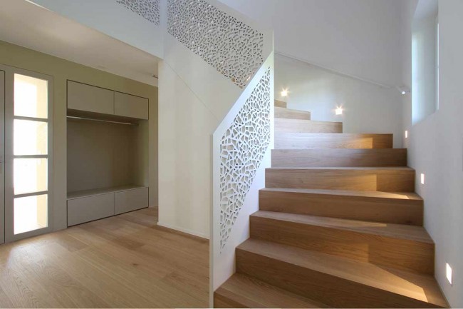 - Rampes d'escalier perforées activant les effets de lumière et d'ombre,