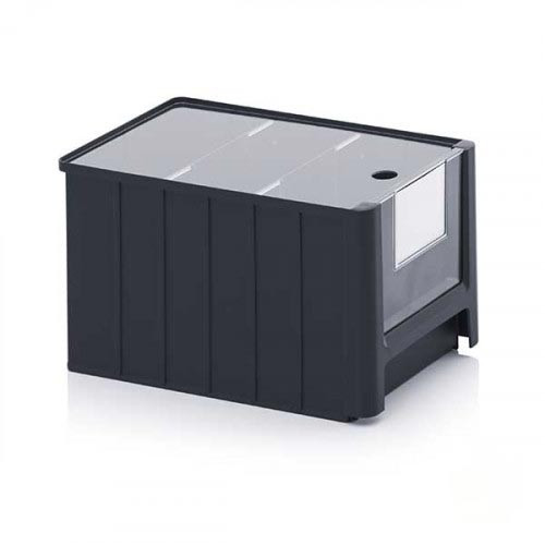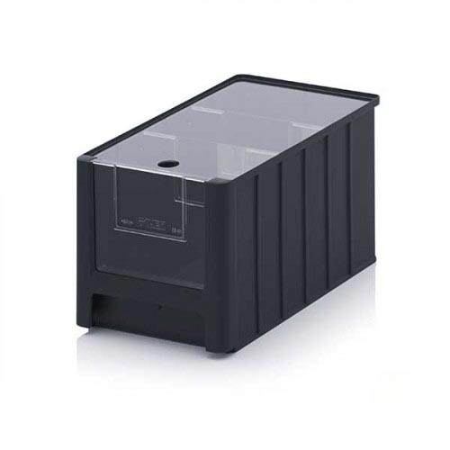 L’ouverture frontale de 152 x 126 mm facilite l’accès rapide au contenu, y compris lorsque les bacs sont empilés ou positionnés sur des étagères.
