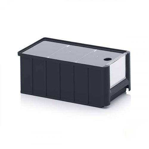 Avec des dimensions intérieures de 292 x 130 x H114 mm, ce bac à bec ESD convient parfaitement au stockage de petites pièces, composants électroniques, connecteurs ou sous-ensembles.