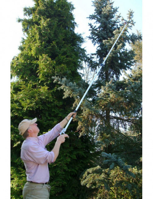 Le sécateur est fabriqué avec une perche télescopique, qui mesure 1,80 m repliée et 3 m dépliée.