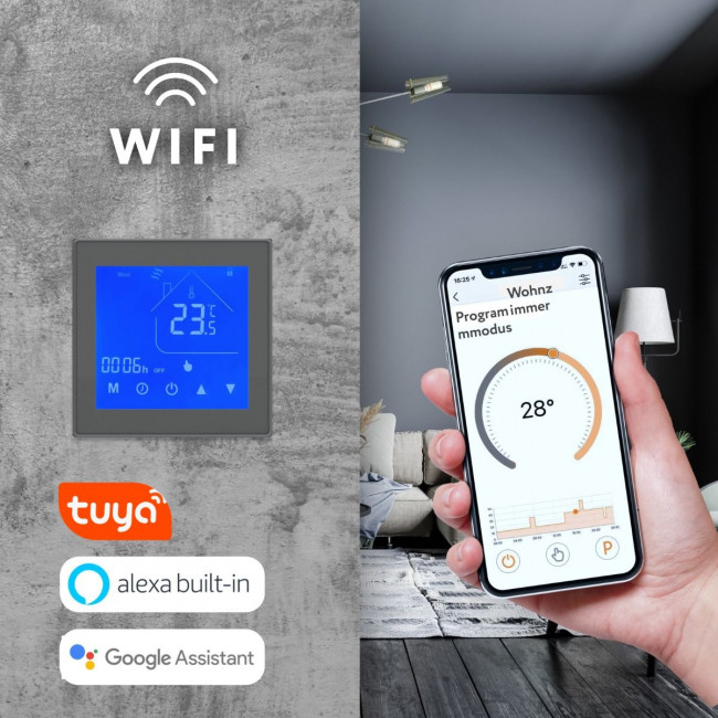 Le thermostat est livré avec une sonde de sol et une sonde d'ambiance fixe, ce qui vous permet de surveiller et de réguler indépendamment la température au sol et la température ambiante, garantissant un confort thermique optimal.