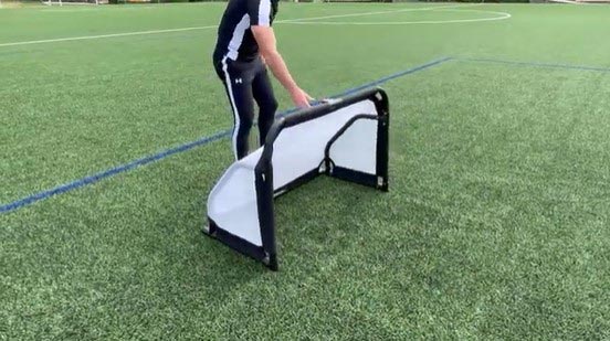Votre but pliable se transforme en quelques secondes en un pack compact.