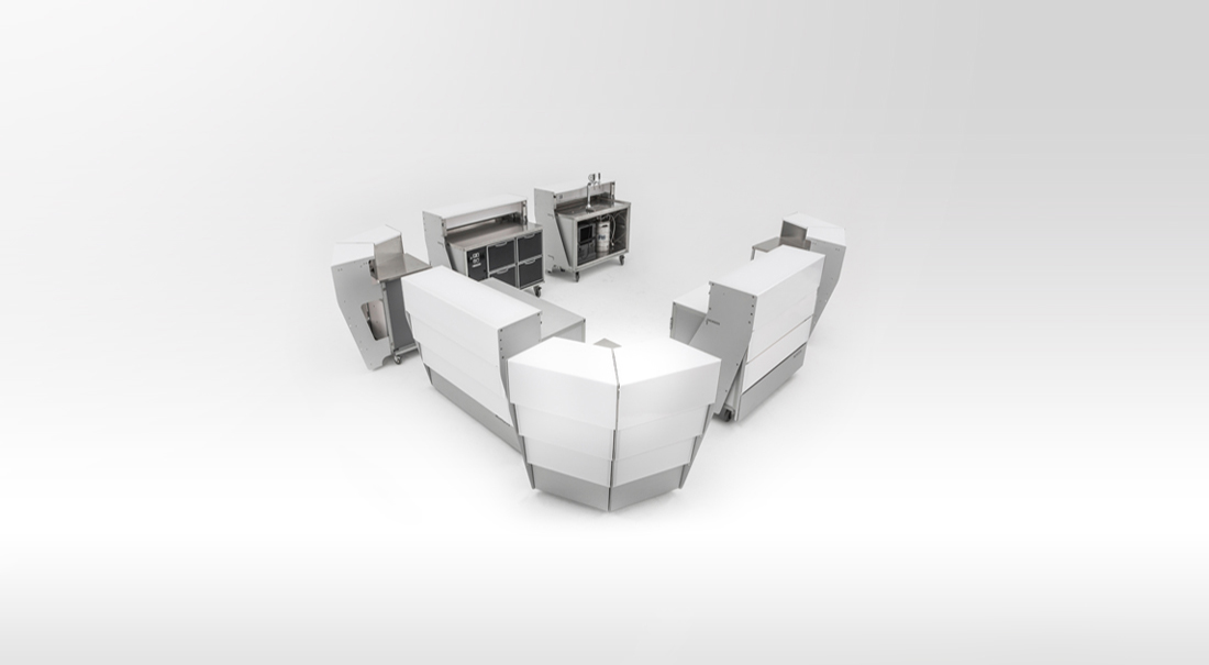 Pour son concept «facile», notre bar mobile est conçu spécialement pour être utilisé seul ou pour des compositions linéaires.