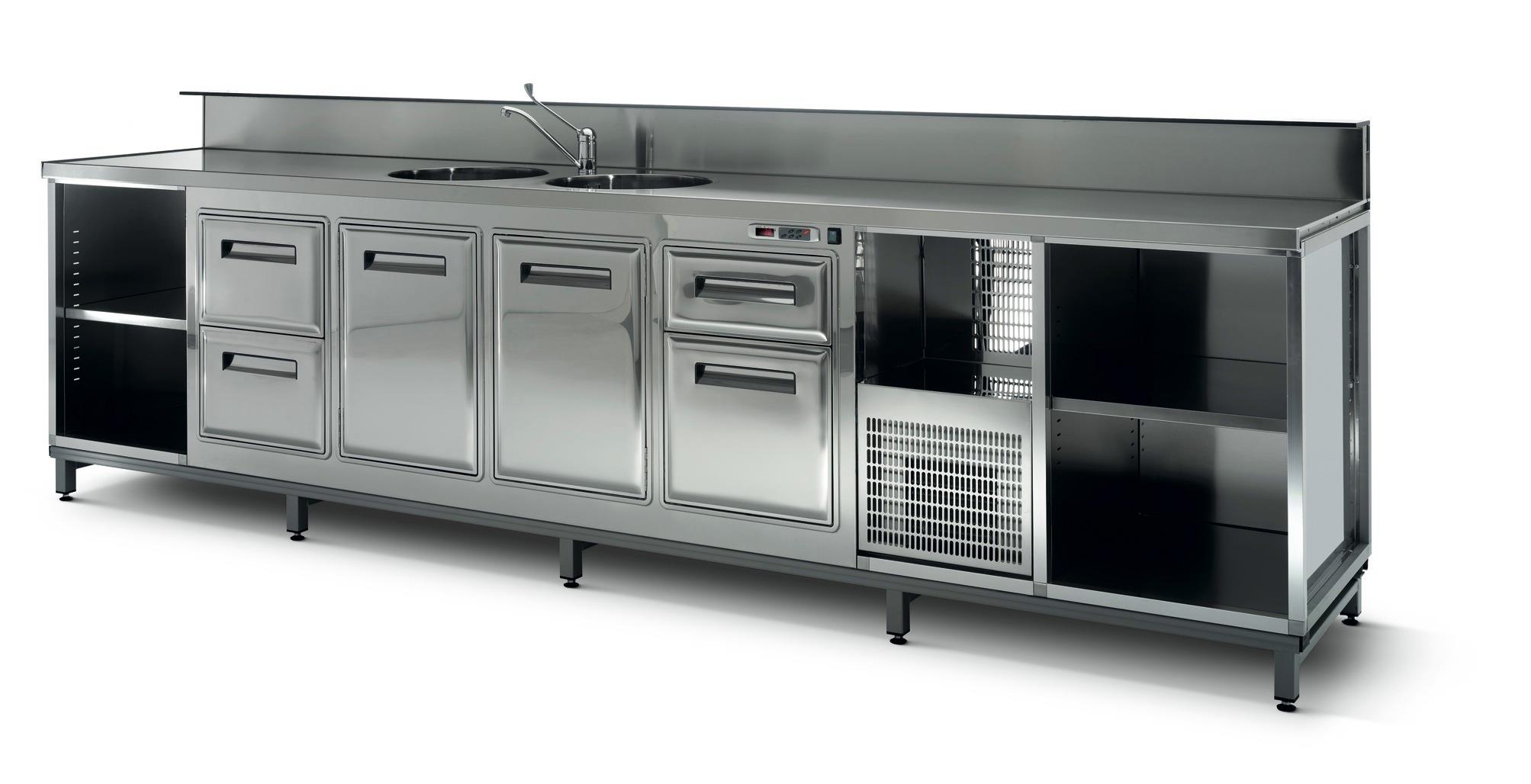 Avec 2 compartiments, 1 pour un évier et un pour une machine à glaçons