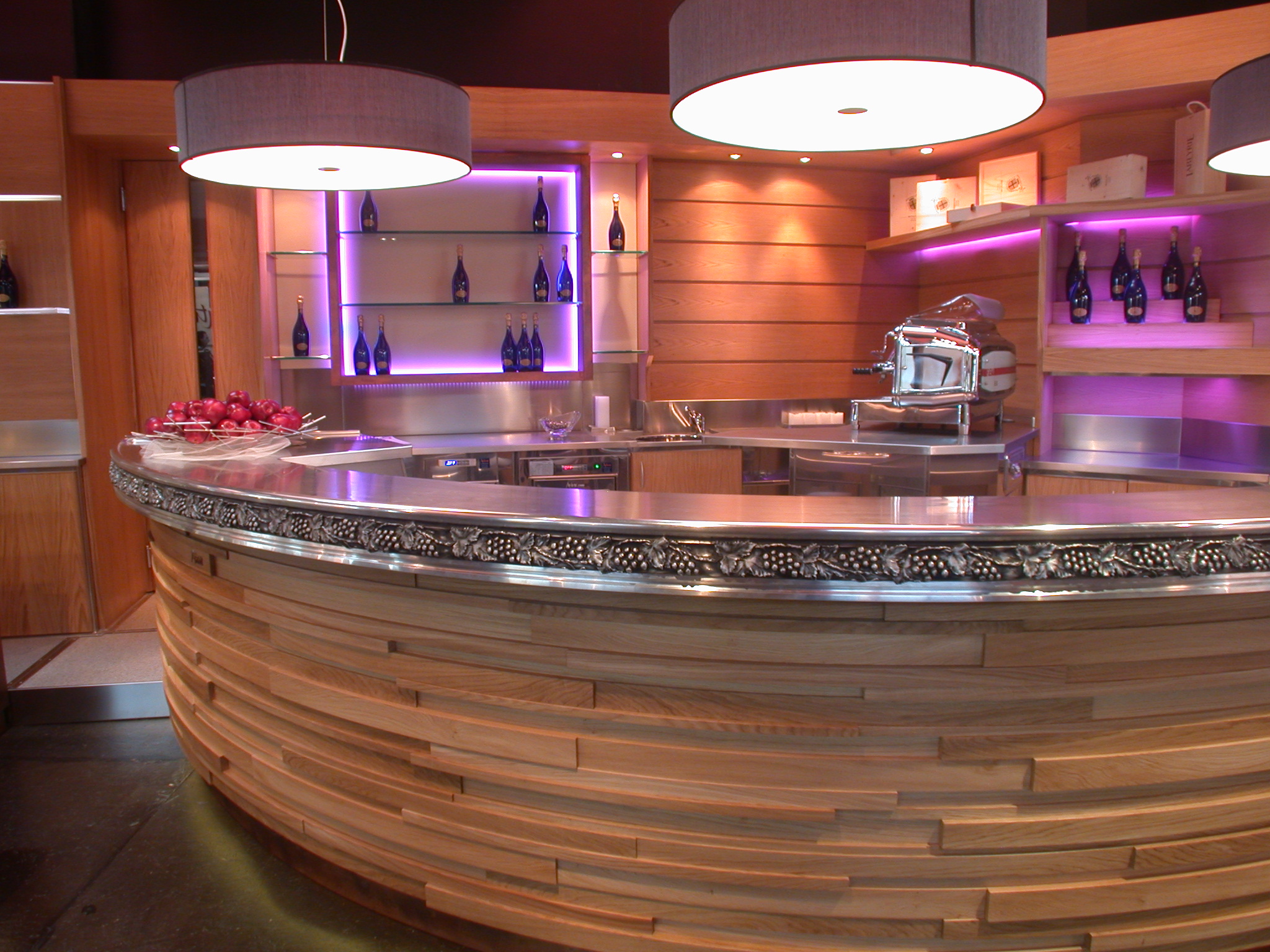 13/11/2024Bonjour, merci de me contacter concernant l’agencement d’un local. Réalisation d’un bar droit de 4ml avec un côté de forme arrondi, plateau en étain ( et arrière bar droit, finition placage teinté vernis avec moulures ( pas de repose pieds ), portes réfrigérée + portes sèches avant et arrière, plan de travail avant en inox, plan de travail arrière en stratifié, dessus d’arrière bar ( crémaillères inox encastrées sur miroirs et étagères bois. Podium bar + podium de forme arrondi entrée passage bar. Colonne étagère d’angle toute hauteur + desserte + plateau mange debout de 5ml. Le projet se situe en Espagne.