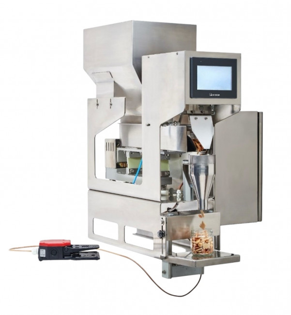 Doseuse électronique de table pour doser avec précision une large gamme de produits pulvérulents ou granuleux, qu'ils soient de type alimentaire, tels que farines, noix, graines, grains, poudres, ou de type cosmétique et chimique, tels que granulés, graines, produits déshydratés, gruaux. La machine peut être équipée d'un ou deux canaux vibrants ou d'une vis sans fin, en fonction de l'application. La structure est en acier inoxydable, de même que l'unité de pesée avec surface d'appui réglable et cellule de pesée. L'unité électronique permet de gérer les phases de pesage et de dosage du doseur. Le système se compose d'un PLC avec un menu de programmation complet avec tous les réglages et les vitesses qui peuvent être sauvegardés dans des recettes. Possibilité de commande à distance.