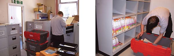 - A déterminer selon analyse du classement ou transfert : en cartons, caisses de transfert ou armoires roulantes.