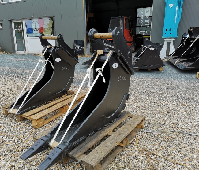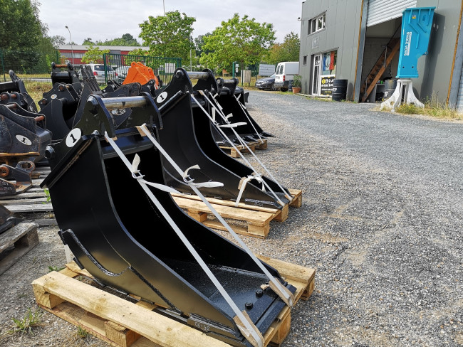 Le godet canalisation pour tranchées étroites est un godet permettant de réaliser des tranchées sans que l'attache rapide ne vienne butter sur les parois.