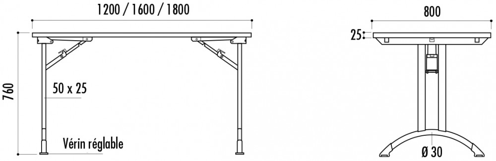 - 2 renforts en acier 30 x 20 mm sous le plateau pour les tables longueur 160 et 180 cm