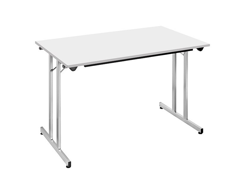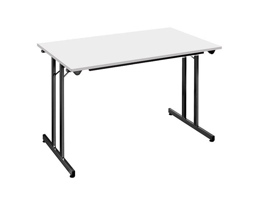 Pensée pour faciliter l’aménagement et le rangement, cette table de travail pliante se distingue par son piètement métallique à dégagement latéral doté d’une finition epoxy résistante.