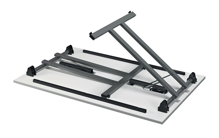 Les coloris du piètement (alu, gris, noir) complètent la personnalisation de la table polyvalente pliante, d’autres finitions étant réalisables sur demande pour répondre à toutes vos exigences d’agencement.