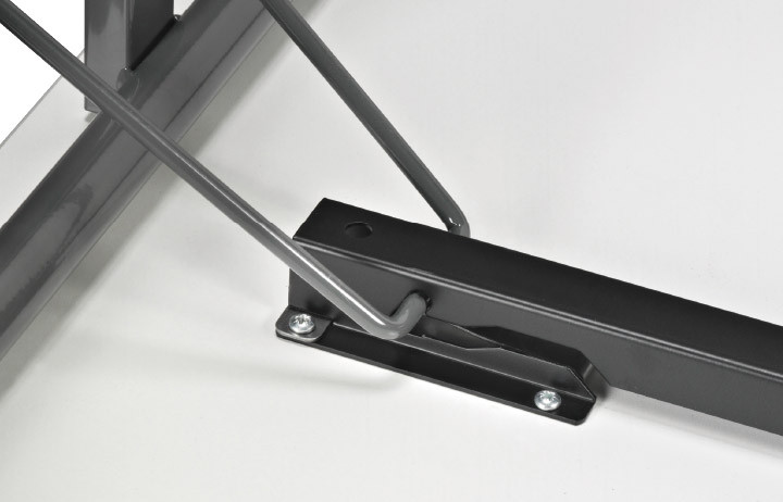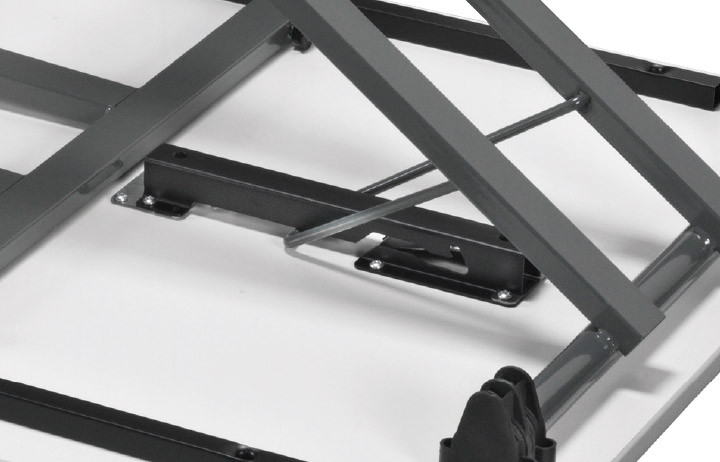 Le système de clipsage sécurisé maintient la table fermement en position ouverte ou repliée, limitant tout risque de basculement et garantissant une sécurité d’utilisation maximale lors des manipulations.