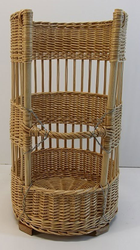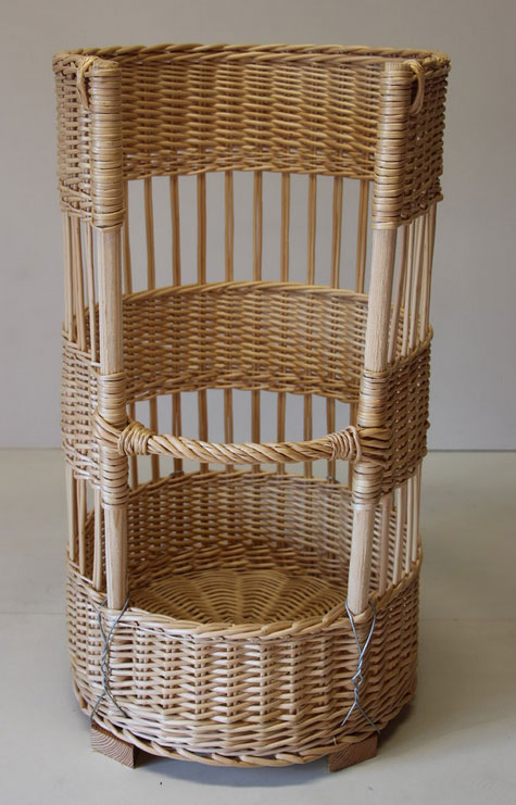 Celle-ci est fabriquée en osier blanc , avec des parois ajourées permettant la circulation de l’air .