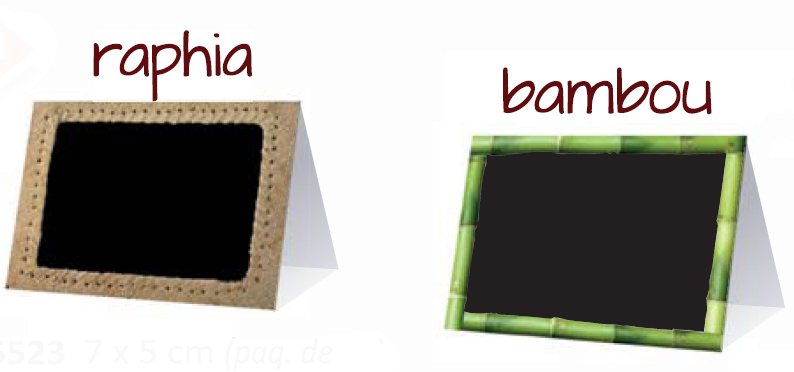 Vendu par paquet de 10 PVC blanc 75/100ème Impression ardoisine pour écriture Encadrement façon Bambou sur PVC 75/100° blanc Dimensions : 7 x 5 cm