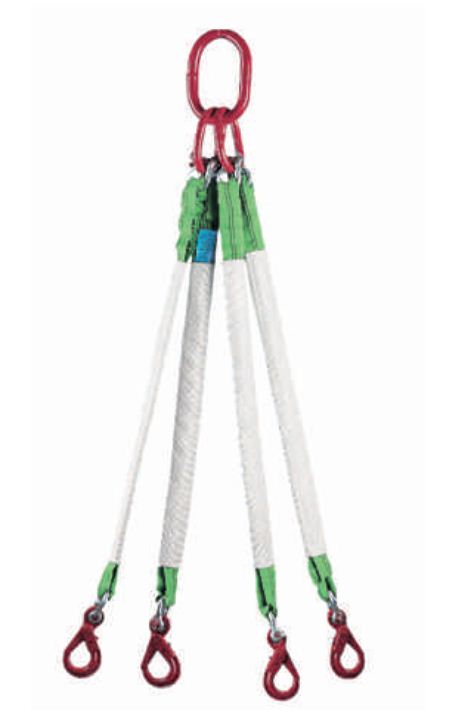 Notre élingue de levage synthétique à 4 brins permet d’arrimer une charge lourde en toute sécurité.