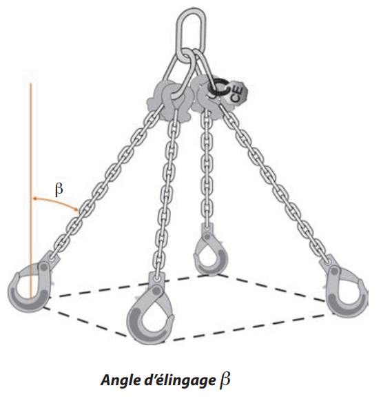Elingue de levage dispose de 4 brins avec une longueur de 0,5 à 4 m (selon modèle).
