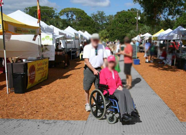 - L’installation est rapide et facile. Grâce à nos fixations adaptées, vous pouvez ancrer les plaques au sol et facilement connecter différentes plaques. Aucun entretien particulier n’est nécessaire. Il s’agit d’une solution d’accessibilité idéale pour un évènement extérieur.