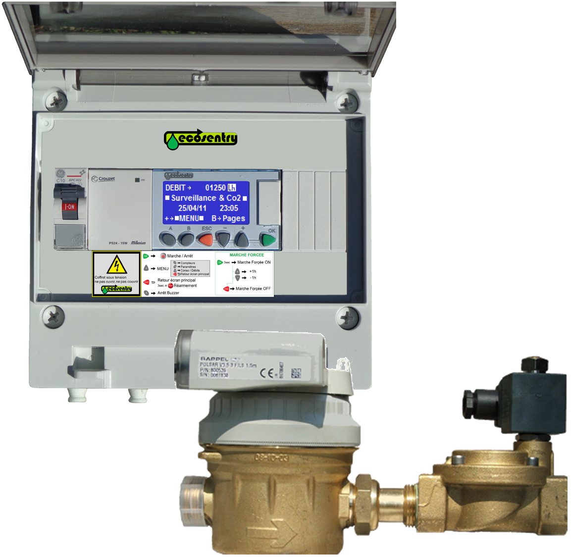 - Détection des fuites d'eau, 1ère alerte et coupure définitive à la 2éme alerte, réglage du débit de coupure