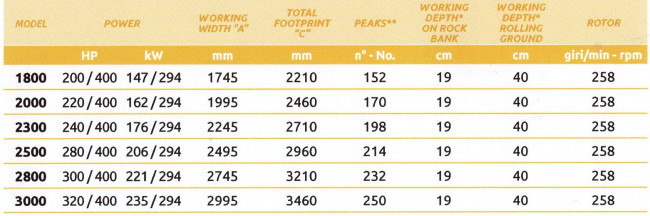 Largeur de travail: 1800, 2000, 2300, 2500, 2800 et 3000 mm