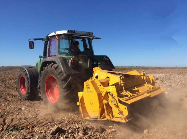 Le broyeur de pierres Valentini FA-M-ATTILA-M permet de travailler dans le sol jusqu’à 70 cm, il se décline en différentes largeurs de travail de 1800 à 2300 mm. Suivant la largeur de travail souhaitée, il faut un tracteur de 320 à 450 Cv pour l’entrainer.