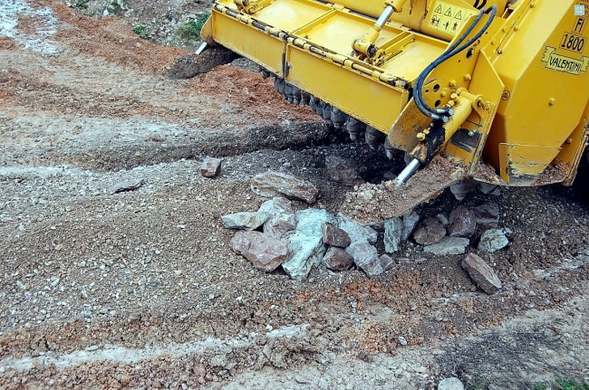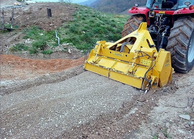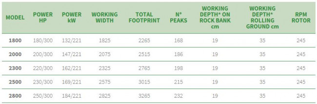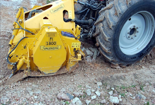 Le broyeur de pierres Valentini FI-IVAN 2T permet de travailler dans le sol jusqu’à 40 cm de profondeur, il se décline en différentes largeurs de travail de 1800 à 3000 mm. Suivant la largeur de travail souhaitée, il faut un tracteur de 200 à 400 CV pour l’entrainer.