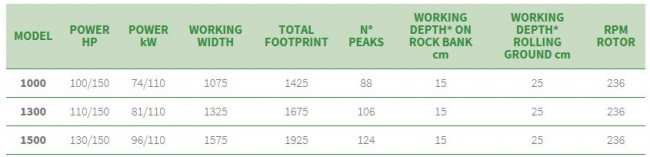 Le broyeur de cailloux Valentini FR-RAMBO 1T permet de travailler dans le sol jusqu’à 25 cm, il se décline en différentes largeurs de travail de 1000 à 1500 mm. Suivant la largeur de travail souhaitée, il faut un tracteur de 100 à 150 CV pour l’entrainer.