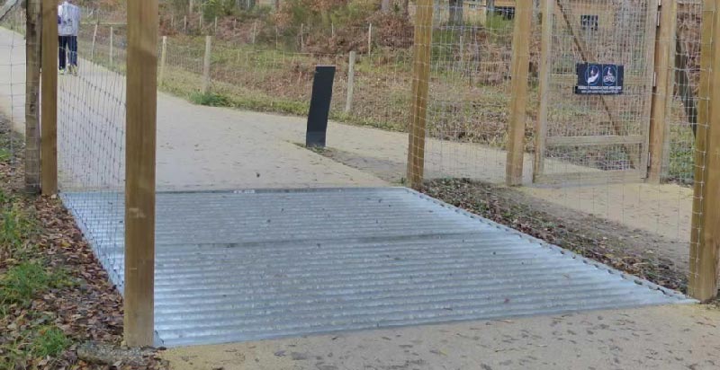 Je souhaite installer un passage canadien devant 2 portails pour éviter la fuite des ânes que nous avons au Domaine.