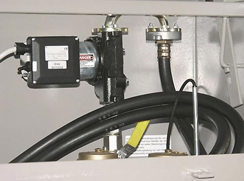 Cette pompe électrique à gasoil, à brancher sur batterie 24 V, est idéale pour le transfert du carburant pour des cuves d’une contenance de 980 litres.