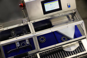 - Le tapis d’évacuation assure une sortie sans perturbation mécanique et permet le rejet des articles défectueux