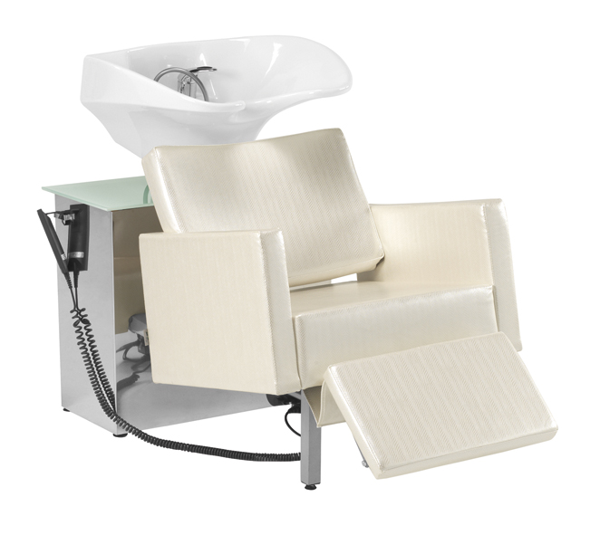 Elégant bac à shampooing à télécommande avec repose-pied électrique, pour un moment de détente destiné à vos clients. Design idéal pour des salons contemporains.