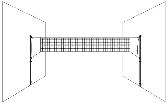 L’ensemble comprend deux rails muraux : l’un équipé d’un treuil à crémaillère pour tendre le filet avec précision, et l’autre destiné à accrocher le filet en toute sécurité.
