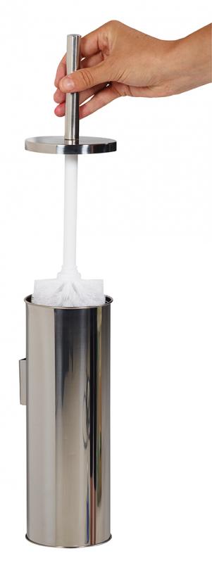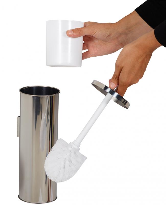 Ce porte-balayette inox incluant la brosse de toilette permettant de nettoyer le fond de la cuvette.