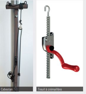 Systèmes de tension : treuil à crémaillère + cabestan ou double cabestan.