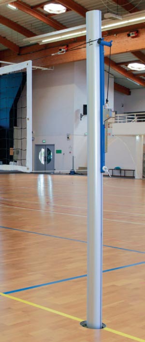 Adaptables aux fourreaux existants de Ø 90 mm, ces poteaux conviennent aussi bien aux salles déjà équipées qu’aux nouvelles installations.