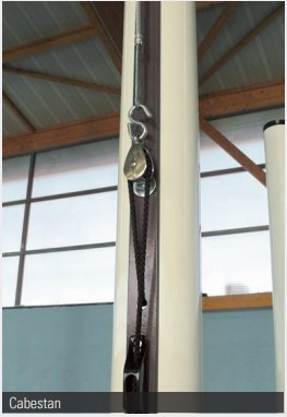 Chaque modèle est équipé d’un cabestan à taquet coinceur assurant une tension du filet fluide et maîtrisée. Le câble passe dans une poulie de guidage, préservant la durée de vie du filet tout en simplifiant la mise en place.