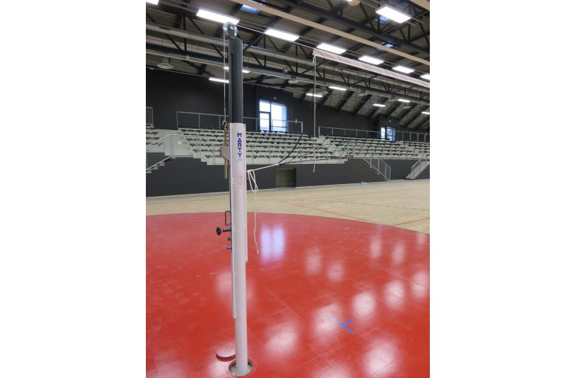 Ce poteau volley haute compétition dispose d'un système de réglage des hauteurs télescopique avec encliquetage automatique aux hauteurs réglementaires.