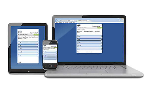 - Les participants se connectent et peuvent répondre à vos questions à l'aide de boutons-réponses virtuels.