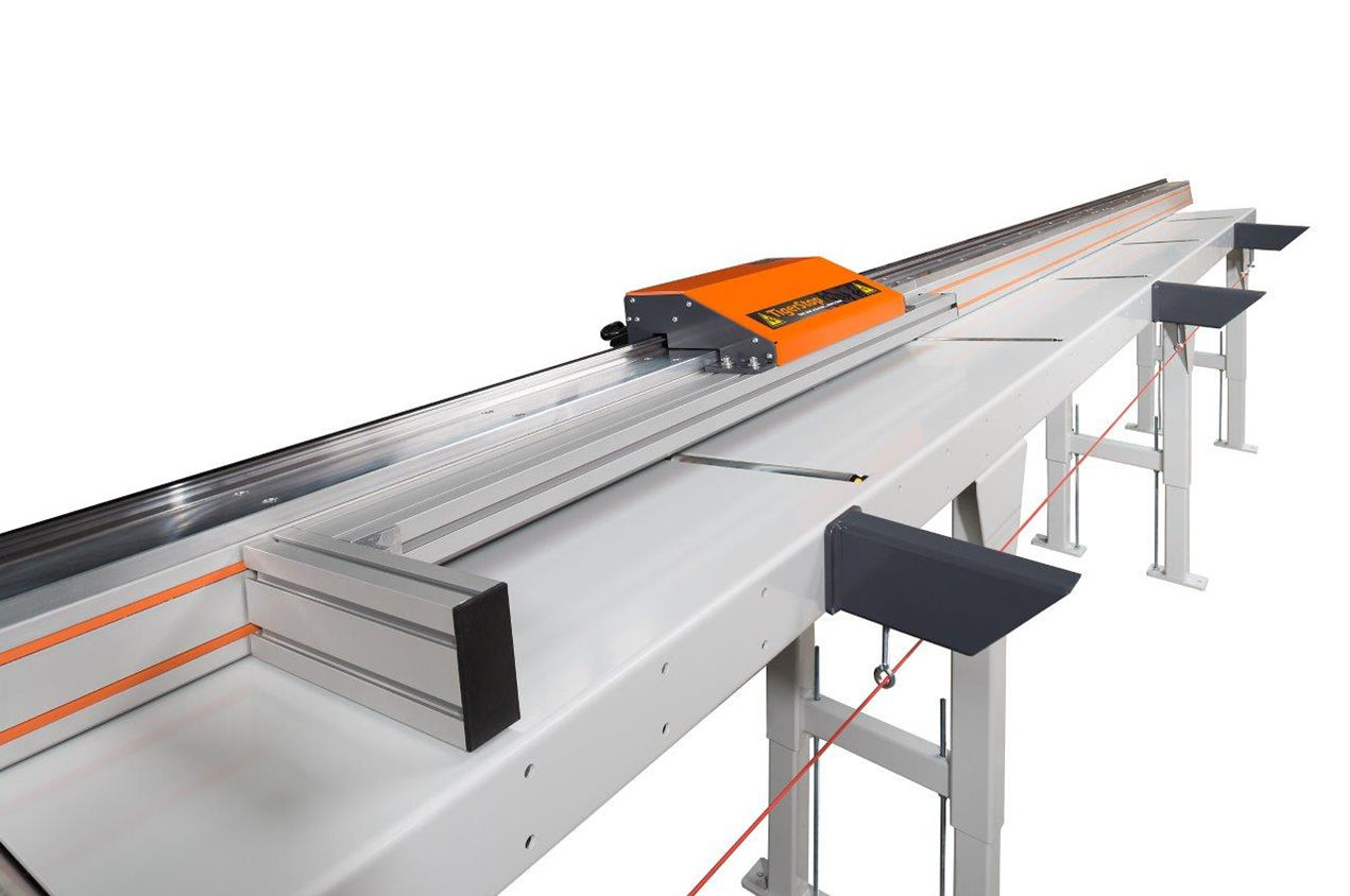 Idéale pour les fortes charges, la butée numérique "TSL TigerStop" permet de pousser jusqu'à 500 Kg ( plus sur demande ) sur des longueurs de 24 mètres.