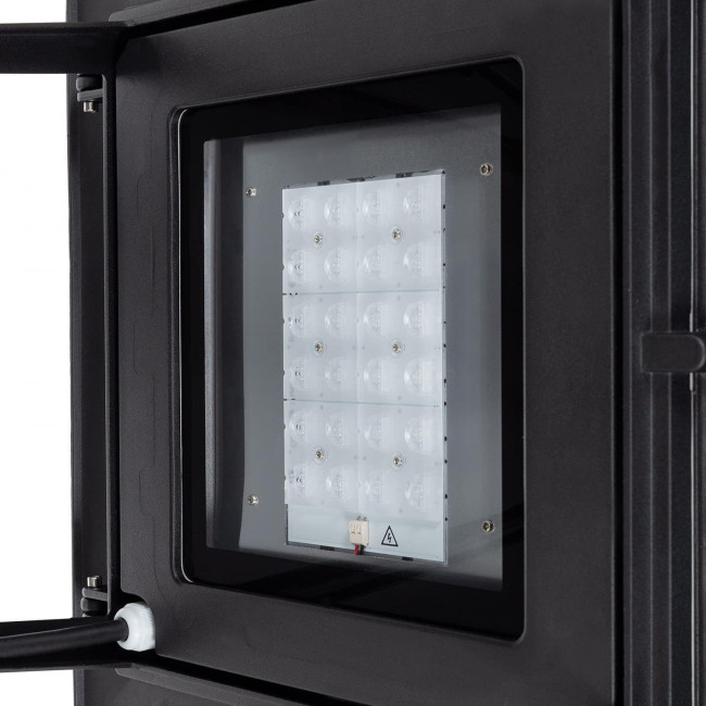Ce lampadaire public LED haute puissance est conçu pour durer. Son boîtier en aluminium moulé ADC12 est complété par une finition peinture poudre haute tenue (RAL 9011). Il est protégé contre les intrusions (IP66) et les impacts (IK09). Il fonctionne sans problème entre -30 °C et +50 °C.